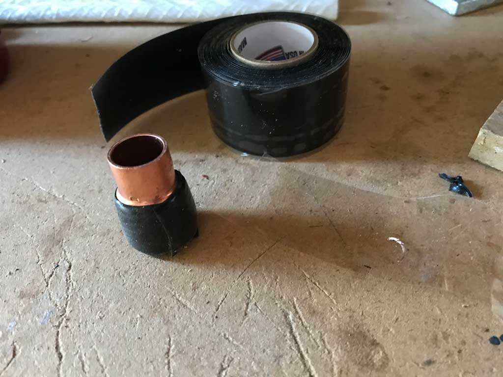 Wrap the silicon tape around the copper fitting until it’s thick enough to fit snuggly in the bottle.